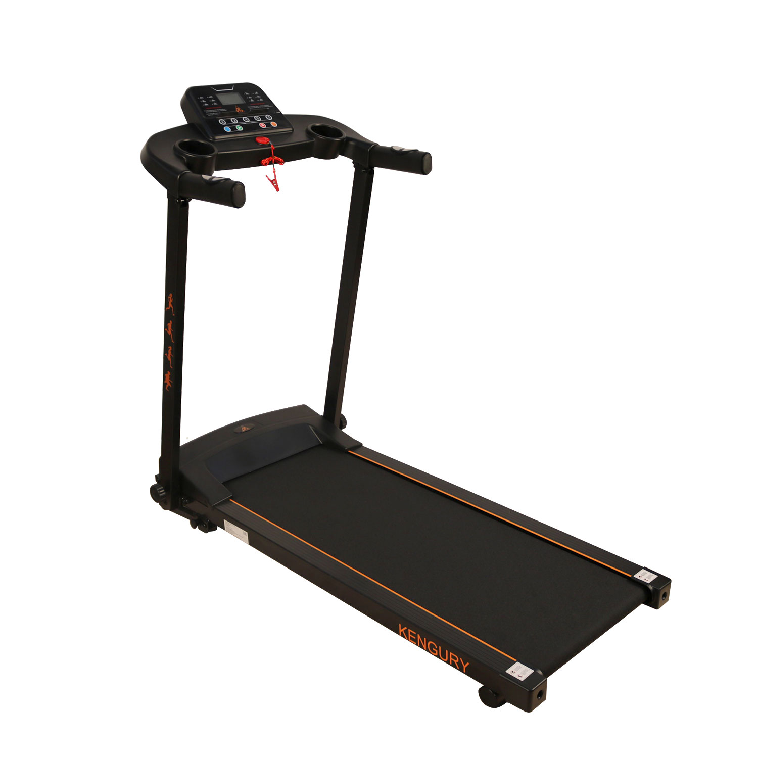 Представляем новую компактную беговую дорожку DFC KENGURY. Дорожка предназначена для индивидуальных тренировок в домашних условиях. На выбор 2 цветовых решения. На стойках тренажера присутствует изображение бегущих людей.