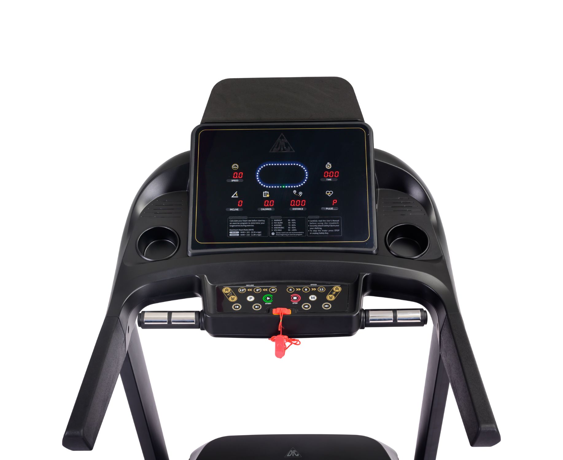 На консоли расположены входы MP3 и USB, 2 динамика (громкость регулируется с консоли), подставка под IPad, 2 кармана для бутылки. Сенсорные датчики располагаются на поручнях тренажера, также в комплекте с дорожкой идёт ключ безопасности и 16 встроенных амортизаторов полотна.
