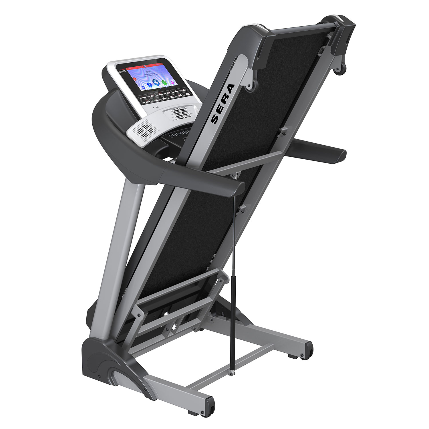 Новая беговая дорожка в линейке домашних тренажеров от популярного бренда DFC - модель SERA. Тренажер оснащен надежным мотором мощностью 4,0 л.с. и большим беговым полотном размером 50,5 х 140 см.