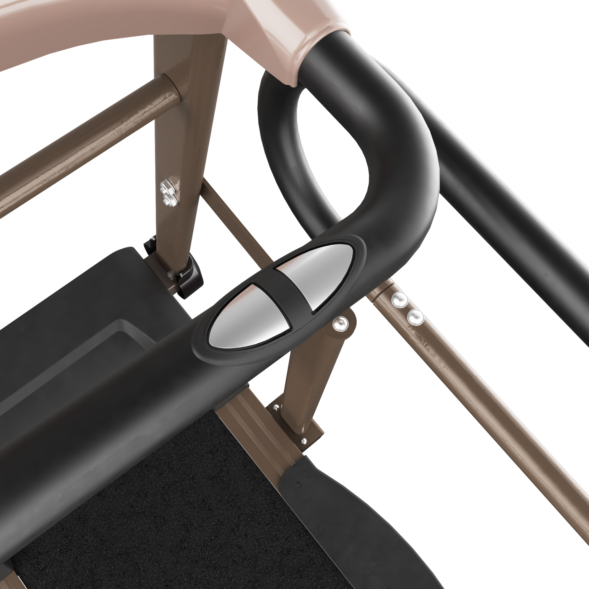 - Пульсометры на поручне. На передних фиксированных поручнях реабилитационного тренажера расположены пульсометры, они позволяют следить за сердцебиением пользователя во время тренировки, данные выводятся на дисплей. Удерживайте датчики пульса (расположенные на ручках) обеими руками в течение 5 секунд, чтобы рассчитать и отобразить количество сердечных сокращений в минуту (уд/мин) на экране компьютера. Высокие поручни по бокам отличаются повышенной прочностью, поскольку принимают большую нагрузку от веса пациента, который на них опирается.