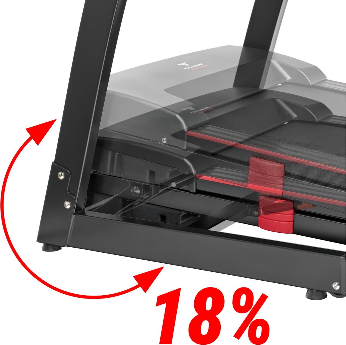 Большое беговое полотно с рабочей площадью 132*47 см обеспечивает комфорт и безопасность при ходьбе и беге на любых скоростях, включая максимальные. Для наиболее эффективной тренировки дорожка оборудована двигателем подъема полотна. В отличии от большинства других дорожек, у Titanium Masters Physiotech A360 угол наклона действительно большой, его диапазон составляет от 0 до 18%.