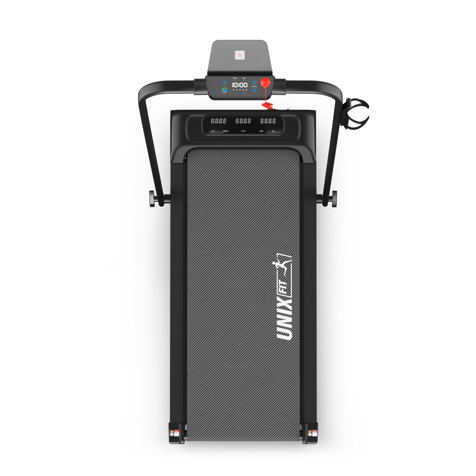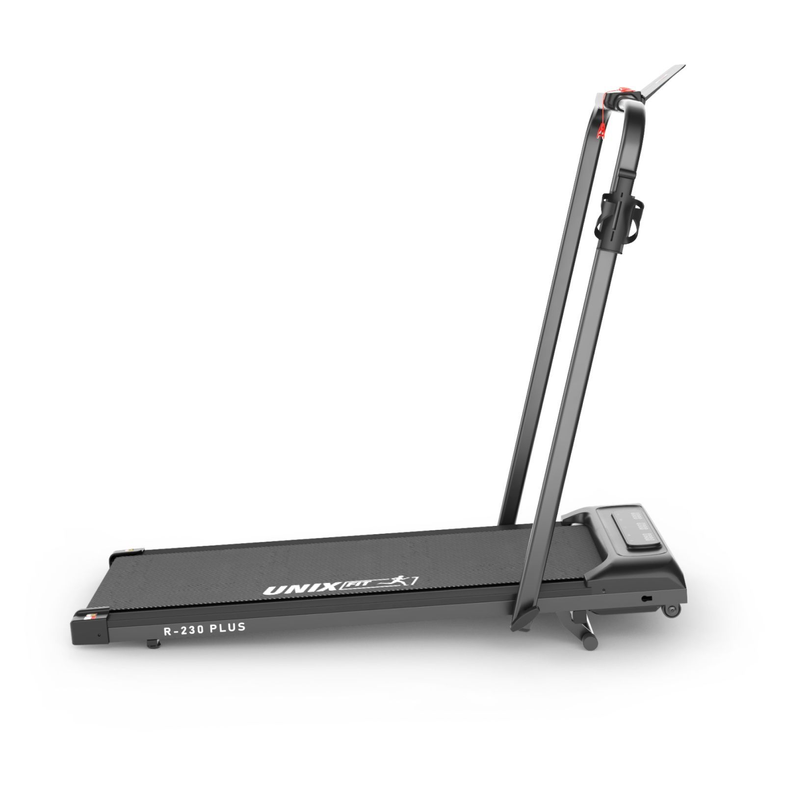 Беговая дорожка электрическая складная UNIX Fit R-230 PLUS — идеальный выбор для тех, кто стремится поддерживать себя в отличной форме прямо у себя дома! Этот ультратонкий кардиотренажер сочетает в себе компактность, инновационные технологии и превосходные характеристики, позволяющие вам заниматься спортом комфортно и эффективно каждый день. Благодаря своей уникальной конструкции и лёгкости складного механизма, эта беговая дорожка без поручней легко адаптируется к любым условиям вашей квартиры или загородного дома. Компактность кардио тренажера R-230 PLUS позволяет установить его даже в небольших помещениях, сохраняя свободное пространство. Два удобных транспортировочных ролика облегчают перемещение тренажера внутри помещения, делая тренировки дома комфортными и удобными для всей семьи.