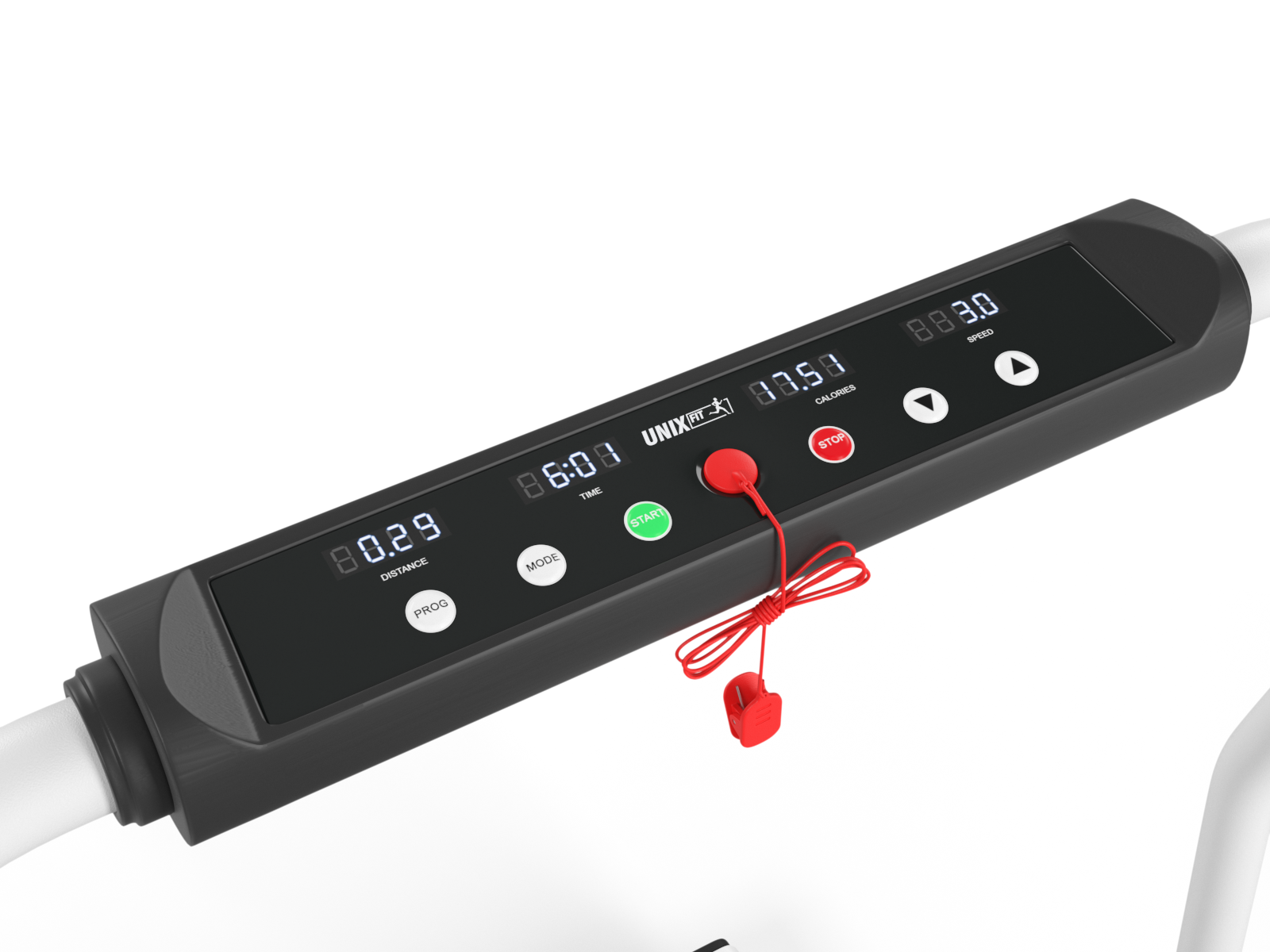 Компактная консоль на складном поручне отображает необходимые во время тренировки параметры: скорость, время, пройденное расстояние и расход калорий.