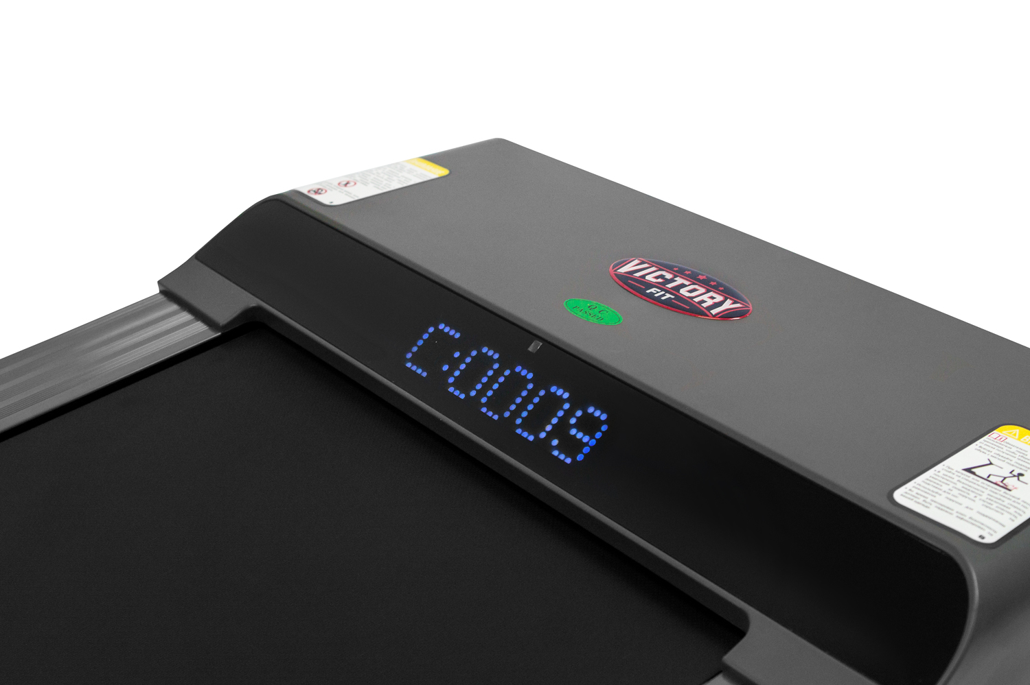 Максимальная скорость ограничена 6 км/ч. Предусмотрена регулировка скорости с шагом в 0,5 км/ч. Беговая дорожка может храниться как в горизонтальном положении, так и в вертикальном.Производитель VictoryFit
