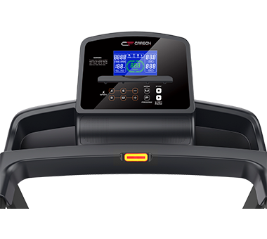 У модели CARBON Т520 есть компенсаторы неровностей пола, за счет чего тренажер легко привести в нужное положение. Перемещение оборудования происходит за счет 2-ух транспортировочных роликов. Все показания тренировочного процесса размещены на ярком буквенно-цифровом LCD-дисплее с голубой подсветкой. Данные видно при любом освещении. В памяти консоли содержится 44 встроенные программы, в которых используются различные виды тренировок. Русифицированные клавиши и надписи на консоли для удобства управления тренировкой. На консоли есть удобные быстрые клавиши контроля скорости бегового полотна, а также старта и окончания тренировки. Приятной опцией является подставка под планшет, с помощью которой можно разнообразить однотипные тренировки за просмотром фильма или сериала и большие отсеки для бутылок и аксессуаров на консоли. Тренажер предварительно собран на заводе, быстрая сборка (6 болтов) для приведения в рабочее состояние.