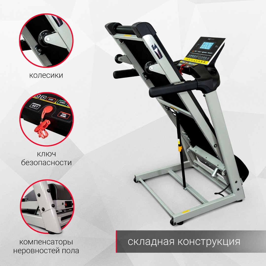 Электрическая беговая дорожка Protrain M1S — это удачное решение для домашних тренировок. Программа Quick Start идеально подходит для разминки, позволяя подготовить мышцы к кардиотренировке. Cool Down (или «заминка») позволяет после интенсивных упражнений дать организму прийти в себя. После тренировки беговую дорожку можно сложить, а транспортировочные ролики позволяют без труда переместить ее в место для хранения.