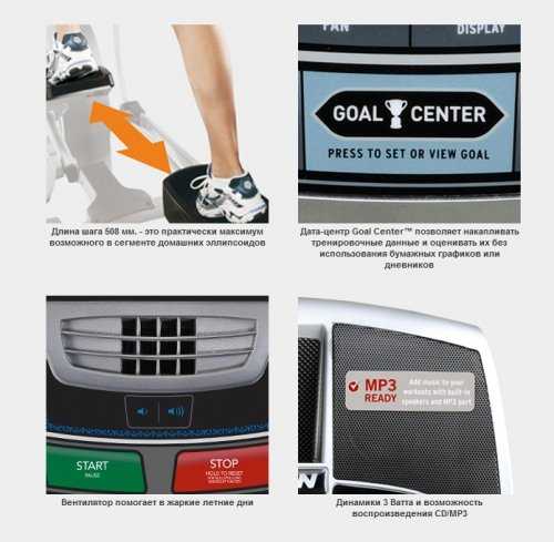- дата-центр Goal Center™ c персональной памятью тренировок,встроенные динамики,вход для CD/MP3, выход для наушников.