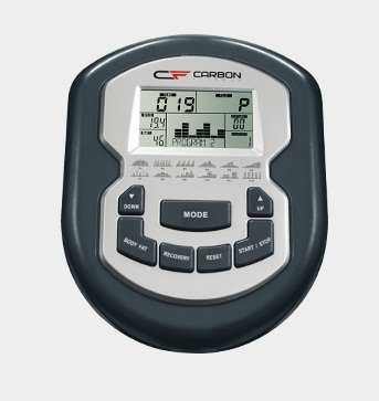 - профиль, время, дистанция, скорость, калории, обороты в мин., пульс, Ватты, фитнес-тест (Recovery), фитнес-оценка, жироанализатор (Body Fat), индекс мас