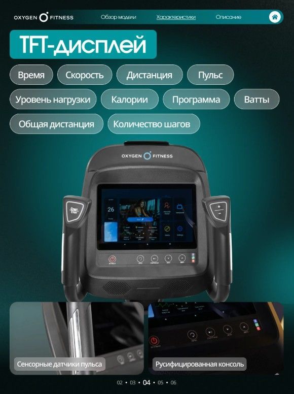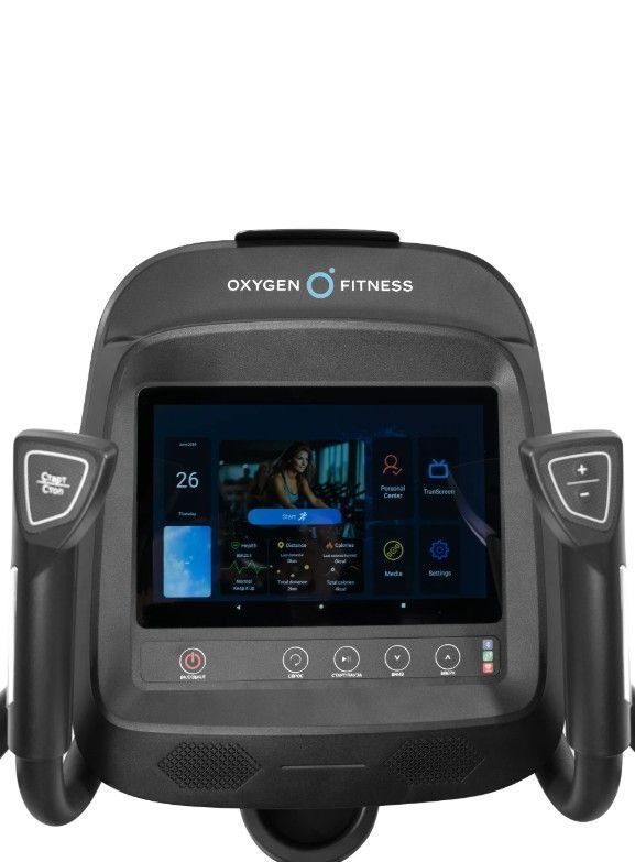 ОписаниеOXYGEN FITNESS AZURE — высокотехнологичный эллиптический тренажёр для домашних тренировок продвинутого уровня. Модель ориентирована на пользователей, которым важна длина шага, точная настройка нагрузки, работа по пульсу и расширенная аналитика тренировки. AZURE сочетает в себе эргономику клубного оборудования и функциональность, адаптированную для комфортного использования дома. Тренажёр построен на высокопрочной раме с антикоррозийной обработкой и двухслойной покраской, что обеспечивает устойчивость и долговечность конструкции. Корпус выполнен из ударопрочного полистирола HIPS, рассчитанного на длительную эксплуатацию. Ключевые особенности движения: • Инерционный вес маховика 30 кг (BioFusion™) при реальном весе 10 кг — ровный, стабильный и тихий ход. • Длина шага 540 мм — максимально естественная траектория, близкая к беговой, подходит пользователям разного роста. • Минимальное расстояние между педалями — 70 мм, что снижает нагрузку на колени и тазобедренные суставы. • Дисковый шатун — повышенная надёжность и точность передачи усилия. • Ручная регулировка угла наклона (3 уровня) позволяет смещать акцент нагрузки и разнообразить тренировочный процесс. Антискользящие педали увеличенного размера обеспечивают уверенную фиксацию стопы даже при интенсивной работе. AZURE использует электромагнитную систему нагружения с 16 уровнями сопротивления, регулируемыми электронно. Это обеспечивает точную и плавную настройку нагрузки под любые цели — от восстановительных тренировок до интенсивной кардиоработы. Тренажёр оснащён современной TFT-консолью с расширенным набором показателей: • время, скорость, дистанция, • калории, пульс, уровень нагрузки, • программа, Ватты, количество шагов, • общая дистанция. Программный пакет включает 21 режим тренировки: • быстрый старт и ручной режим, • 12 предустановленных программ, • 4 пульсозависимые программы, • 1 программа целевого пульса, • режим работы по Ваттам. Для контроля пульса предусмотрены сенсорные датчики на поручнях. Рукоятки двухпозиционные, с нескользящим покрытием. Дополнительные возможности: • Bluetooth-колонка для воспроизведения аудио, • подключение к интернету, • функция проекции экрана, • подставка под планшет или смартфон, • интерфейс на английском языке. OXYGEN FITNESS AZURE — эллиптический тренажёр для тех, кто хочет получить максимум от домашних кардиотренировок: продвинутую биомеханику, интеллектуальные программы и уровень комфорта, сравнимый с профессиональным фитнес-клубом.