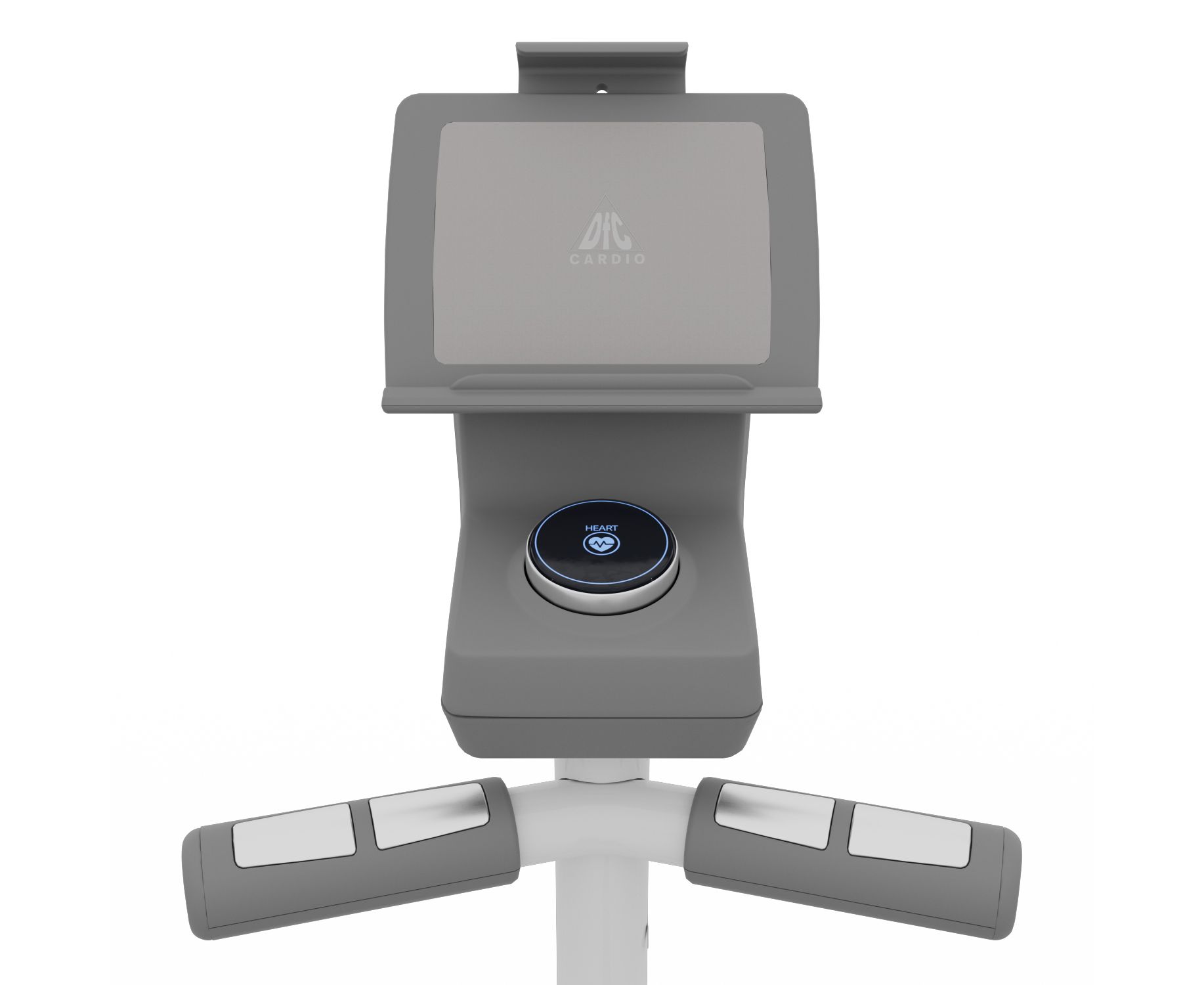 Маховик весом 6 кг расположен спереди, длина шага — 38 см. Тренажёр серии Cardio DFC E4100 предназначен для пользователей, чей вес не превышает 120 кг. 24 уровня нагрузки регулируются электронно. На передней консоли есть регулируемая подставка под Ipad (от 13 до 20 см), а также круглый монохромный дисплей. Он отображает скорость, уровень нагрузки, число шагов, количество оборотов в минуту, пульс (считывается датчиками на поручнях). Педали оснащены рифлёным (противоскользящим) покрытием и бортиками для безопасности тренировок. Тренажёр удобно перемещать, благодаря роликам и специальной рукояти. Есть компенсаторы неровности пола.