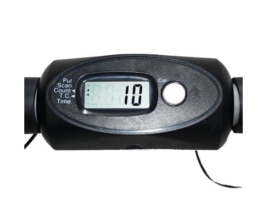 Дисплей с ЖК-экраном позволяет отслеживать необходимые параметры тренировки: время, расстояние, калории, пульс, шаги. Руль с мягкими накладками для комфорта, и нескользящие педали для дополнительной стабильности. На руле расположены 2 датчика пульса с отображением показаний на дисплее консоли. Как правило, встроенные на тренажерах датчики имеют погрешность измерения. Поэтому для более точного определения частоты сердечных сокращений (ЧСС) рекомендуем использовать нагрудный кардиопояс с часами - монитором, модель DFC W117 (опция, приобретается отдельно).