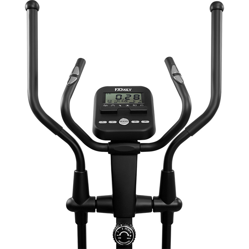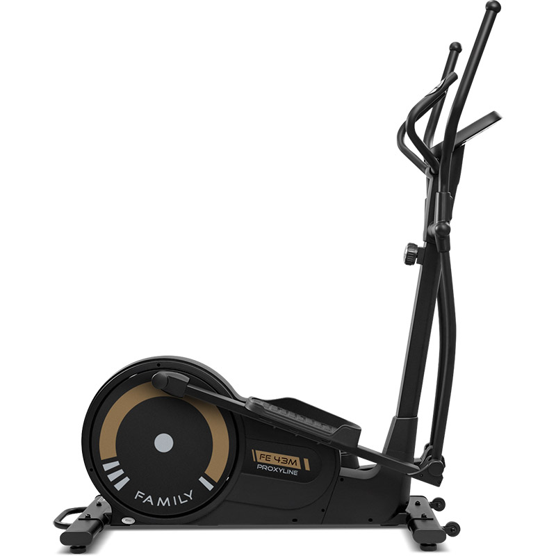 Эллиптический тренажер Family FE 43M серии ProxyLine — современная энергонезависимая модель с магнитной системой сопротивления и механическим изменением нагрузки, для регулярных домашних тренировок. Отличается мощной конструкцией на тяжелой раме, классической системой привода педалей, качественной эргономикой, и как следствие, правильной эффективной траекторией движения. Широкий шаг 432 мм и регулируемые в 2-х положениях педали обеспечивают комфортные тренировки пользователям, позволяя подстроить тренажер под свой рост и комплекцию, максимальный вес пользователя 130 кг. Во время тренировки идет усиленная нагрузка на мышцы ног и ягодиц, плечевой пояс, косые мышцы живота и мышцы спины. При этом на суставы и связки нагрузка максимально снижена.