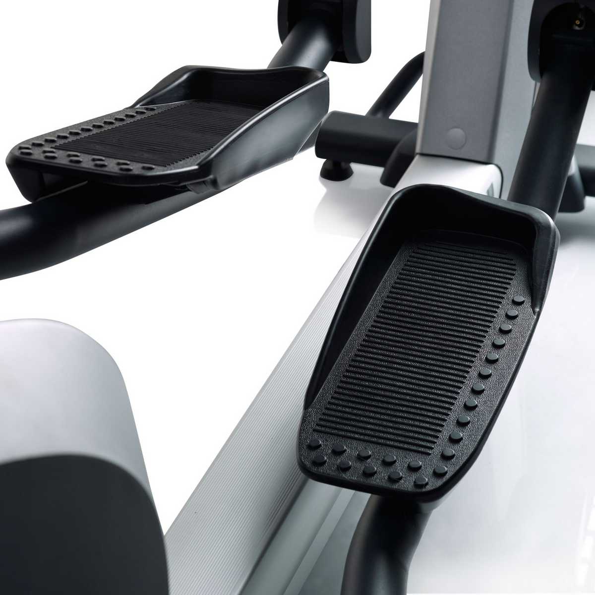 В комплектацию тренажёра входят боковые рычаги, которые предусмотрены для низкоинтенсивных тренировок всего тела. Эллиптический тренажёр задействует почти все мышечные группы, помогает сжечь больше калорий и привести мышцы в тонус.