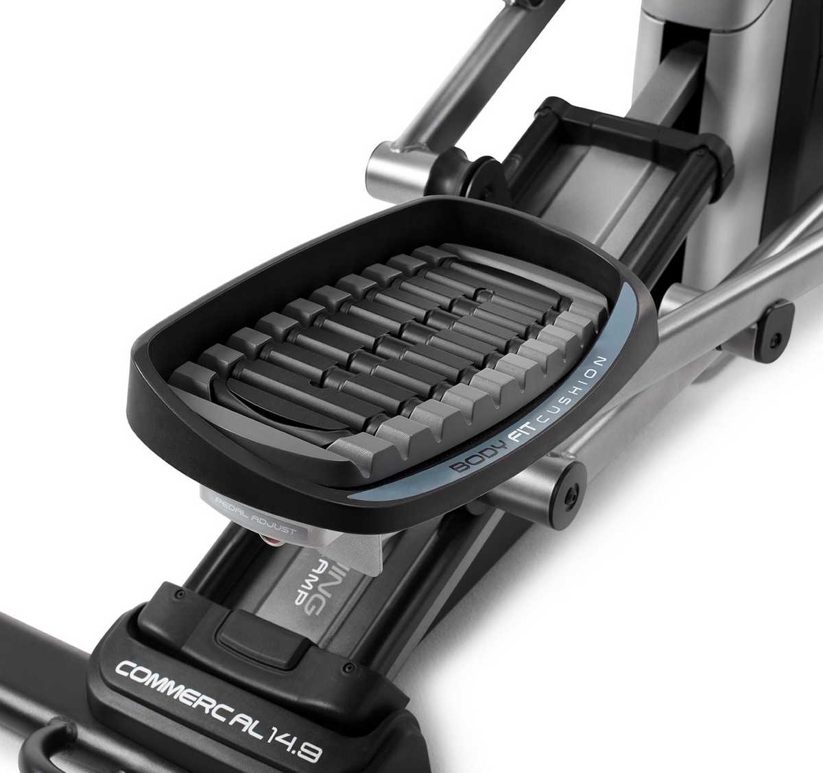 NordicTrack серии Commercial идеально подходит для тех, кто серьезно относится к своим фитнесс - тренировкам. Он специально сконструирован для результативных, стабильных и комфортных занятий. Встроенный функционал модели Commercial C14.9 позволит настроить параметры тренажары для достижения конкретных результатов. Консоль управления тренажера в новом дизайне оснащена цветным сенсорным HD дисплеем размером 10" и встроенной операционной системой на базе Android на русском языке. С помощью кнопок управления 1-Touch™ вы можете быстро отрегулировать угол наклона, длину шага или сопротивление. Фирменная система вентиляции AutoBreeze™ автоматически адаптирует скорость вентилятора к скорости тренировки. Контролировать пульс вы можете с помощью встроенных датчиков Dual EKG™, или нагрудного кардиопояса, который входит в комплект поставки. Педали с мягкими рифленными вставками Body Fit Cushion и регулировкой угла наклона в 3 положениях позволят вам выбрать на тренажере удобное положение ног для продуктивной и продолжительной тренировки. Подключить MP3-плеер или смартфон и прослушать любимый трек или аудиокнигу можно с помощью кабеля через разъем jack-3,5 или по Bluetooth®. Тренажар позволяет вывести изображение с консоли на телевизор через HDMI-порт (кабель приобретается отдельно).