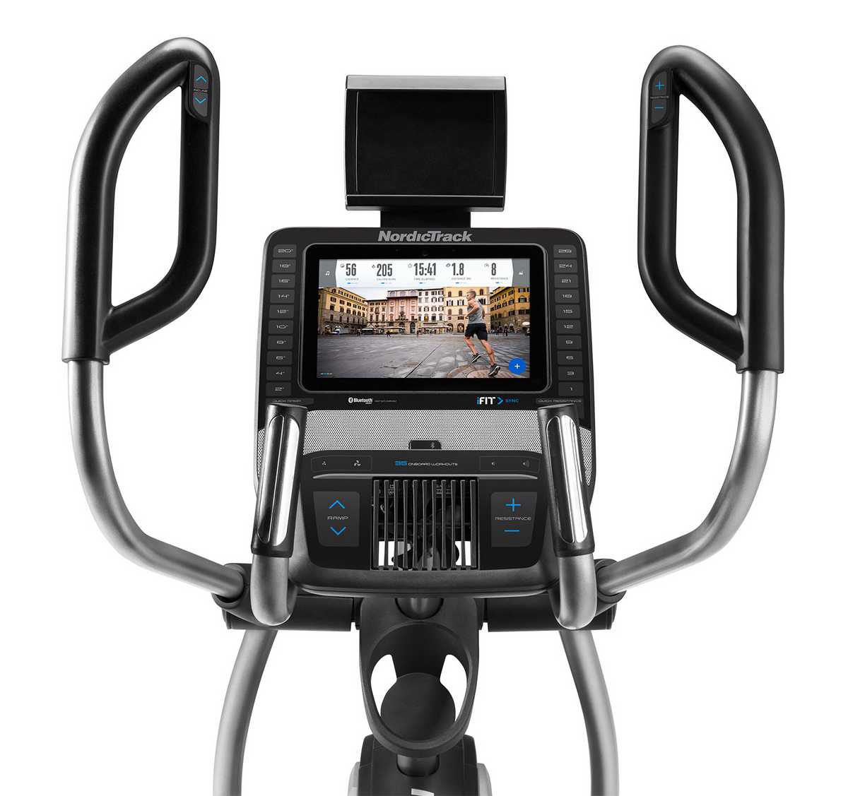 Бренд, производитель NordicTrack, компания ICON (США) Тип домашний с передним расположением маховика Система нагружения бесшумная магнитная с электроприводом SMR™ Количество уровней нагрузки 26 Регулировка нагрузки электронная цифровая 1-Touch™ Масса маховика 15 кг Максимальный вес пользователя 135 кг Длина шага 48 см Изменение угла наклона до 20° Регулировка угла наклона электронная цифровая 1-Touch™ Педали широкие, с мягким рифленым покрытием и регулировкой угла наклона Измерение пульса сенсорные датчики Dual EKG™ Grips, нагрудный кардиопояс (в комплекте) Дисплей 10" Smart HD Touchscreen цветной Показания консоли время, расстояние, количество сожженных калорий, уровень наклона, скорость, пульс Язык интерфейса русский Количество программ 35 Спецификация программ ручной режим, тренировка на местности, встроенные программы с целевым значением скорости Технология iFit® поддерживается iFit® Coach*