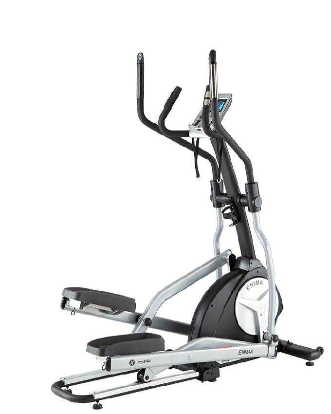 Легко складывающийся тренажер PROXIMA ENIMA - ваша действительная свобода в выборе места и времени для занятий спортом. Тренажер PROXIMA ENIMA обладает неоспоримыми преимуществами в своем классе, а именно: устойчивость этого переднеприводного тренажера гарантирована регулируемым стабилизатором; это складывающийся тренажер, а значит, пользователю предоставляется свобода в его перемещении, хранении, и, конечно же, PROXIMA ENIMA привлекает покупателей своим новаторским дизайном.При разработке тренажеров PROXIMA использовались новейшие достижения в области спортивной медицины и инженерные ноу-хау. Складной тренажер PROXIMA ENIMA имеет электромагнитный привод с автоматизированной электронной системой переключения уровней сопротивления «AUTO TENSION»тм, обеспечивает 16 уровней нагрузки с фиксированным уровнем сопротивления. Тренажер может быть использован в любых условиях, где есть электросеть.PROXIMA ENIMA предназначен для продвинутого уровня пользователей.Для повышения плавности хода пользователя инженерами отдела R&D разработана технология «FLOW STEP»тм. Технология «FLOW STEP»тм предоставляет дополнительные возможности для пользователя ощутить плавность хода без рывков и делает работу пользователя на тренажере бесшумной. Конструкция тренажера позволяет пользователю совершать мягкие эллиптические движения, что обеспечивает щадящий режим нагрузки на суставы голеностопа, коленей, позвоночник. Одной из основных функций эллиптических тренажеровPROXIMA ENIMA являются кардио-тренировки. С тренажером возможно использование нагрудного кардиодатчика (приобретается отдельно), компьютер тренажера содержит 18 встроенных программ, в том числе, и программы с целевыми показателями пульсовых зон и разнообразными профилями нагрузки. «QUICK KEY»тм - это технология управления нагрузкой на активных рукоятках, клавиши, позволяющие изменять степень сопротивления на тренажере. Данная функция обеспечивает возможность регулировки уровня сопротивления тренажера без прерывания ритма тренировок.