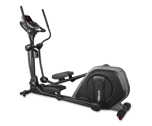 Помимо надежной высокотехнологичной системы нагружения, FORCE E750 LX обладает рядом других важных преимуществ. Безусловно, важна рама - иначе тренажер просто не выдержит высокоинтенсивных нагрузок. FORCE E750 LX построен с использованием сварного профиля максимальной прочности (Ultra Heavy Gauge Steel). Именно поэтому нетто вес изделия составляет внушительные 116 кг, а максимальный вес рассчитан на пользователей до 200 кг. Педальный узел состоит из трехкомпонентного супернадежного кованого шатуна с использованием высококачественных подшипников шведской SKF, это существенно увеличивает общую надежность тренажера. С точки зрения биомеханики рама также превосходно справляется со своими задачами. Длина шага 54 см достаточна для комфортной эффективной тренировки. Расстояние между педалями (супермалый Q-Фактор E.S.Q.F.™) составляет 8 см.