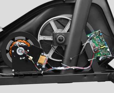 К числу основных преимуществ FORCE E750 LX относится индукционная система нагружения (индукционный тормоз). На сегодняшний день это наиболее совершенная сиcтема нагрузки у вело- и эллиптических тренажеров. Торможение маховика происходит за счет магнитного поля, которое создается катушкой с поданным на неё электрическим током, расположенной в непосредственной близости от маховика. При увеличении силы тока в проводах катушки возрастает сила магнитного поля, и наоборот - при уменьшении силы тока поле ослабевает, за счет чего и происходит изменение нагрузки. Преимущества индукционного тормоза следующие. Во-первых, число взаимодействующих трущихся элементов сведено к минимуму, поэтому и общая надежность системы гораздо выше. Во-вторых, ход тренажера гораздо мягче и плавнее, уровень шума при этом ниже тренажеров с иной системой нагружения. В-третьих, индукционному тормозу (в связке с генератором) не нужно подключение к сети - а это экономия электричества и отстутствие лишних проводов.