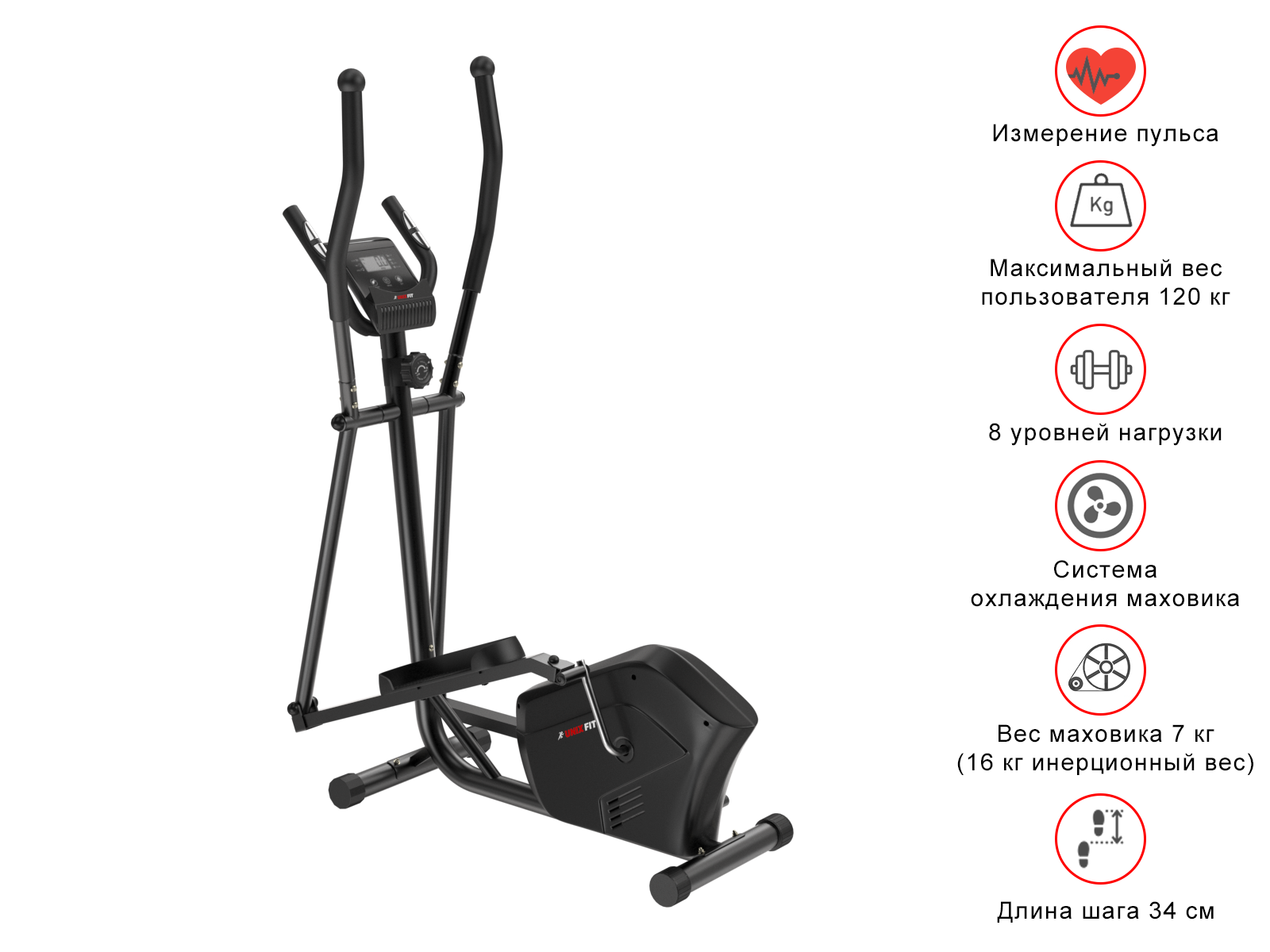 Эллиптический тренажер UNIXFIT SL-340 имеет сенсорные датчики измерения пульса на поручнях, а также систему охлаждения маховика.
