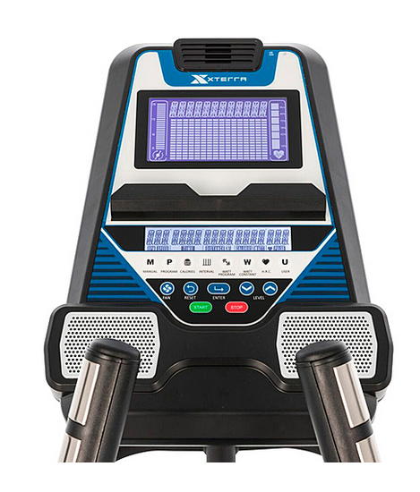 Особенностью консоли Xterra FSX1500 является 2-х оконный LCD дисплей с голубой подсветкой. При установке на полке гаджета второй дисплей остается в поле видимости, предоставляя возможность постоянно контролировать основные параметры тренировки: скорость, пульс, дистанция, затраченные калории, время, нагрузка в Ваттах.
