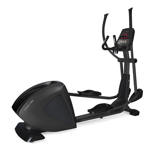 E1100M PRO – это эллиптический эргометр коммерческого класса, предназначенный для использования в крупных премиальных и бюджетных фитнес клубах. Тренажер, как и подобает профессиональному уровню, оборудован лучшими техническими характеристиками. Эллипс оснащен электромагнитной системой нагружения с генератором (GMS). В основе маховик с инерционным весом, эквивалентным 25 кг. E1100M относится к виду эллиптических тренажеров с маховиком, расположенным в задней части оборудования. Как правило, подобная конструкция позволяет достичь оптимальных биомеханических свойств. Длина шага на спортивном снаряде – 46 см, а расстояние между педалями (супермалый Q-Фактор E.S.Q.F.™) 8 см. На базе педального узла дисковой шатун на подшипниках. Сами педали широкие, рассчитаны на любой размер ноги. Кроме того, они покрыты специальным антискользящим рельефом. Традиционно, как и подобает большинству позиций ассортимента Bronze Gym, модель габаритная – 225 см в длину и 72 см в ширину. Эллиптический эргометр весьма тяжелый – 124 кг и выдерживает нагрузку до 180 кг включительно. Оборудование поставляется в упаковке из гофрированного картона размером 230*74,5*85 см.