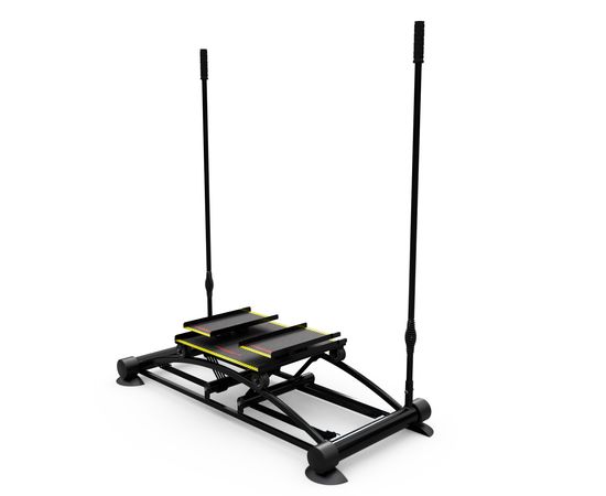Педали на горнолыжном тренажере обеспечивают удобное и безопасное положение стопы. Они имеют шершавое нескользящее покрытие и бортики по краям, которые предотвращают соскальзывание ног во время тренировки. На тренажере также есть поручни, которые обеспечивают дополнительную поддержку и устойчивость во время занятий.
