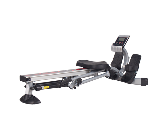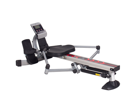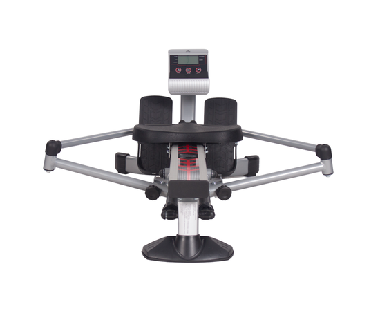 Нагрузка тренажёра создаётся при помощи 2-х гидравлических цилиндров и регулируется с помощью колесика в верхней части каждого цилиндра. Доступно 12 уровней сопротивления, рекомендовано начинать занятия с минимального значения. Дисплей работает от двух батареек типа ААА (не входят в комплект) и отображает следующие параметры: время, количество гребков общее, количество гребков за 1 тренировку и калории. На консоли расположена подставка под планшет.