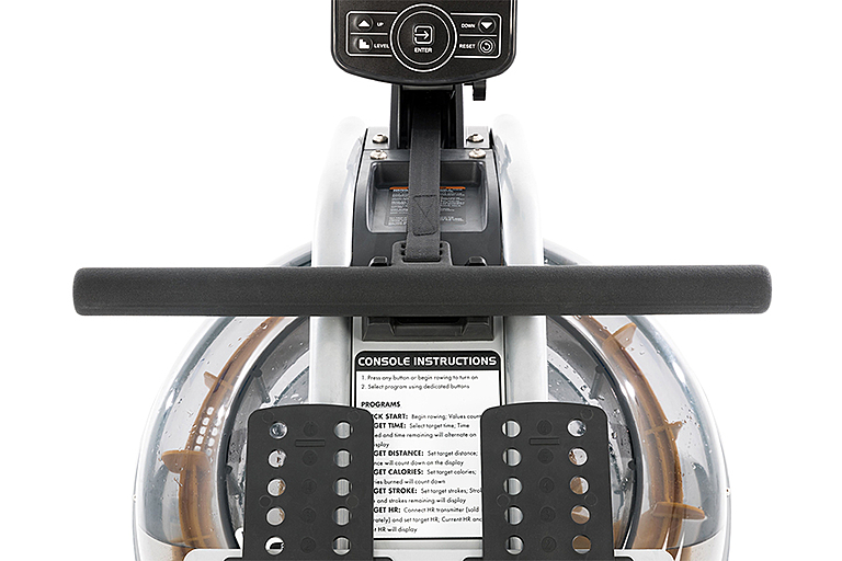 Резервуар для воды обеспечивает до 6 уровней сопротивления и расположен под углом 45 градусов. Большие мягкие педали, удобные эргономичные ручки и сиденье делают CRW800H2O одним из самых удобных и доступных коммерческих гребных тренажеров. Консоль CRW800H2O оснащена большим легкочитаемым 5,5-дюймовым LCD-дисплеем c регулируемым углом обзора, что обеспечивает спортсменам доступ ко всем основным параметрам тренировки. Дисплей тренажера отображает: время, расстояние, калории, пульс, количество рывков, нагрузка в Ватт, среднее время. Благодаря 5-ти предустановленным программам тренировки и дополнительной программе ручной настройки, на тренажере будет комфортно заниматься пользователям разного уровня подготовки. Консоль CRW800H2O автоматически распознавает рывки, чтобы начать тренировку, нужно просто сесть и потянуть за рукоятку. Сиденье имеет оптимальную высоту 38 см, пользоваться им очень удобно: на колени и спину пользователя не будет слишком большой нагрузки. Кроме того, такое сиденье отлично подходит для гребли в низком положении.