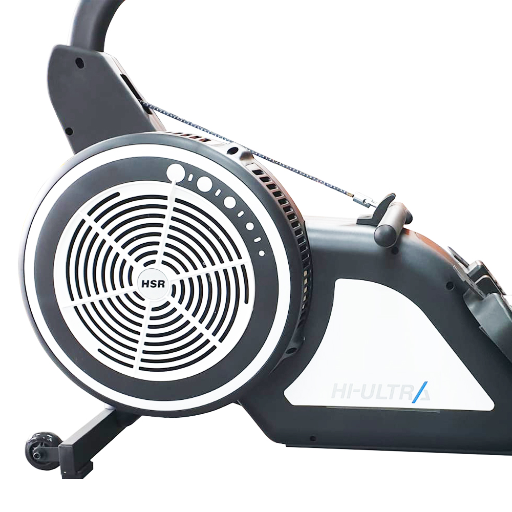 - Воздушный вентилятор с ручным цепным приводом. Регулировка сопротивления за счет изменения потока воздуха. Сопротивление воздуха увеличивается пропорционально скорости движения пользователя, выполняющего упражнения. Соответственно, чем быстрее движения, тем больше силы нужно для этого прикладывать. Таким образом воздушный тренажёры обеспечивает свободу выбора уровня нагрузки.