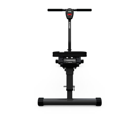 Монохромный LCD-дисплей отображает время, гребки, интенсивность, калории и имеет режим сканирования. Консоль работает от одной батарейки типа AA 1.5 В (не входит в комплект). Тренажер имеет 12 уровней нагрузки, которые можно регулировать с помощью гидравлического цилиндра.