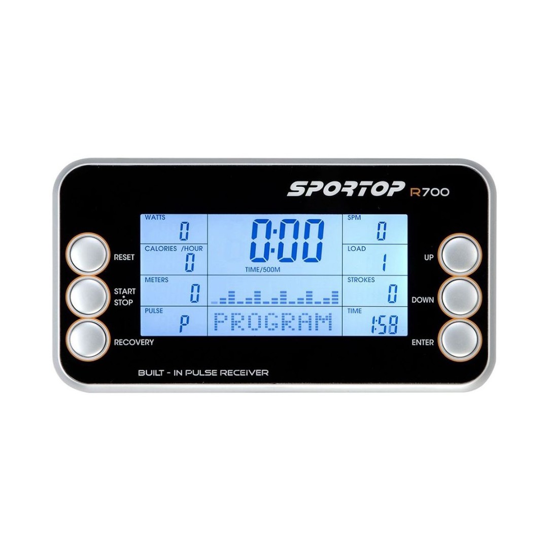 Сиденье большое анатомической формы. Производители учли особенности строения тела человека, так на гребном тренажере от Sportop уменьшена нагрузка на нижний отдел спины.