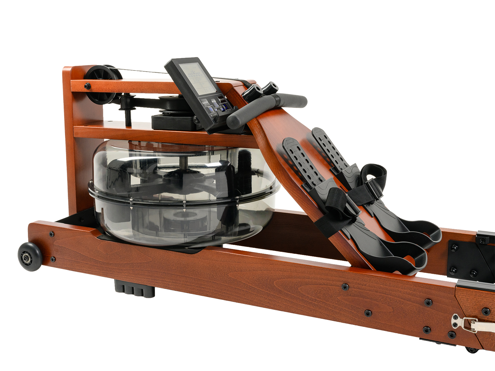 Гребной тренажер Wood Rower наиболее точно имитирует реальную греблю на воде. Водная инерционная система нагружения обеспечивает плавное движение и сопротивление без рывков. Нагрузка регулируется уровнем воды в баке.