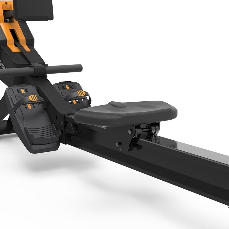 Сиденье выполнено из цельного плотного материала и имеет эргономичную форму, которая повторяет силуэт тела спортсмена. Рельс, по которому движется сиденье, выполнен из высокопрочной стали.