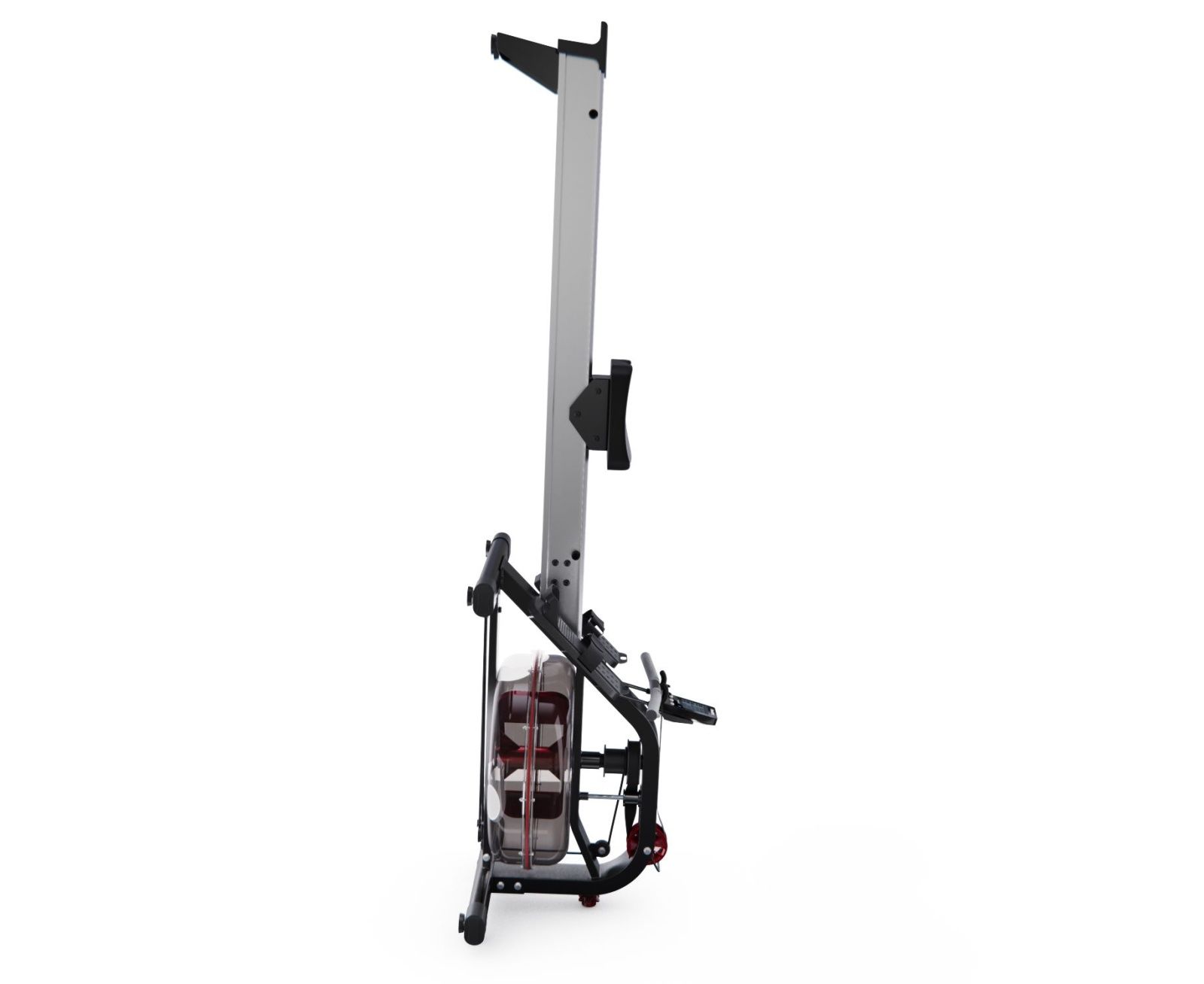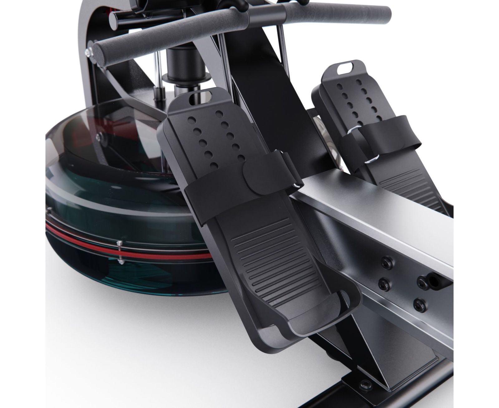 Кардиотренажёр использует водную систему нагрузки, что обеспечивает плавность хода и бесшумную работу. Транспортировочные ролики облегчают перемещение тренажёра при необходимости.