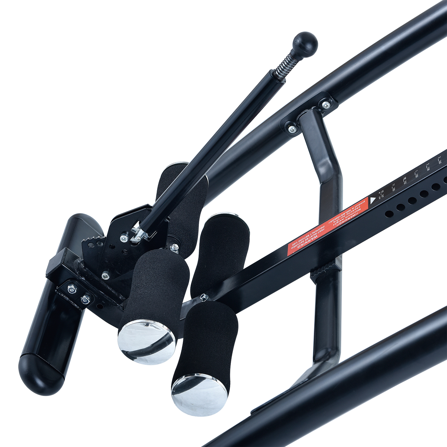 Безопасность во время занятий обеспечивается прочной стальной рамой, толстой и удобной обивкой, держателем для ног и надежным замком.