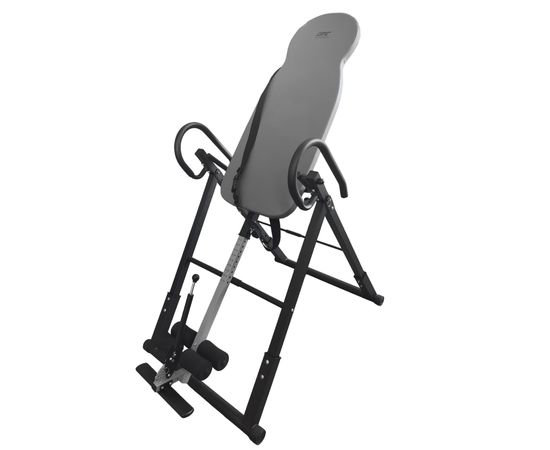 Инверсионный стол DFC IT6320A/2 — это удобный и эффективный тренажёр для улучшения осанки, укрепления связок и улучшения кровообращения. Спинка серого цвета размером 104,5х45 см и толщиной 4 см. Страховочный ремень входит в комплект, двойные валики для удобства использования регулируются на 4 уровня.