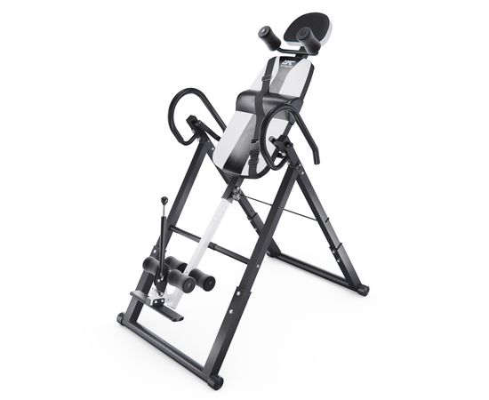 Инверсионный стол DFC IT6312A-W — это удобный и эффективный тренажёр для улучшения осанки, укрепления связок и улучшения кровообращения. Он имеет спинку белого цвета с валиками под голову и съёмную подушку под поясницу для дополнительного комфорта. Страховочный ремень входит в комплект, двойные валики для удобства использования.