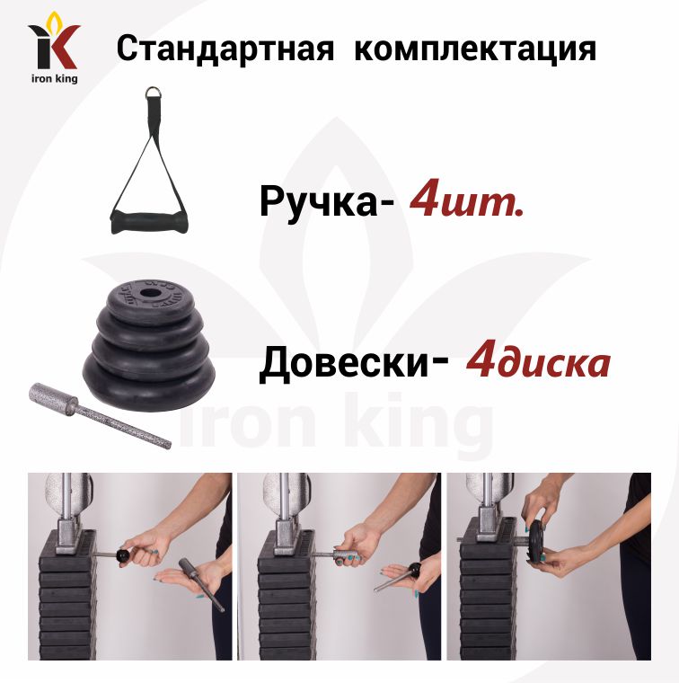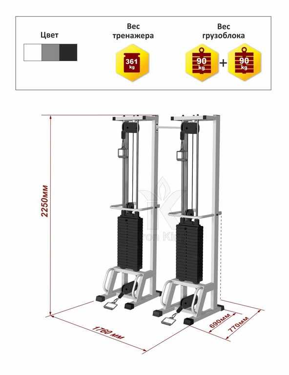 Цвет На выбор: белый, серый или черный Вес, не более 430 кг Вес грузоблока 95 кг*2 Вес одного груза 6 кг Трос 6 мм в оболочке ПВХ Максимальная нагрузка троса 1 200 кг Покрытие грузоблоков Обрезиненные Втулка Пластиковая Подпятники Резиновые Краска Порошковая Размер 1510х690х2250 мм Характеристики