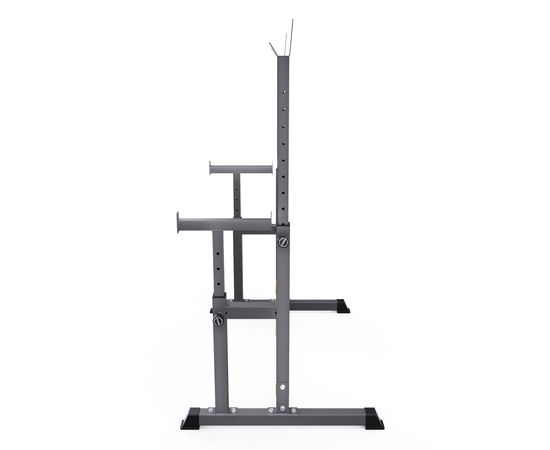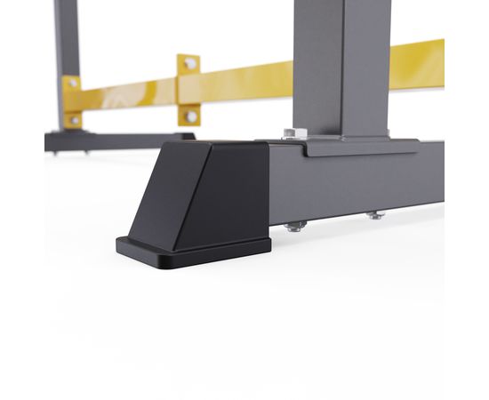 Устойчивое основание стойки для приседаний из высокопрочной профильной трубы 50 х 38 х 1,5 мм выдерживает динамическую нагрузку до 200 кг (динамическая нагрузка – нагрузка на элементы конструкции в движении). Подходит для выполнения полного спектра упражнений со штангой: от приседаний и становой тяги до жима лежа.