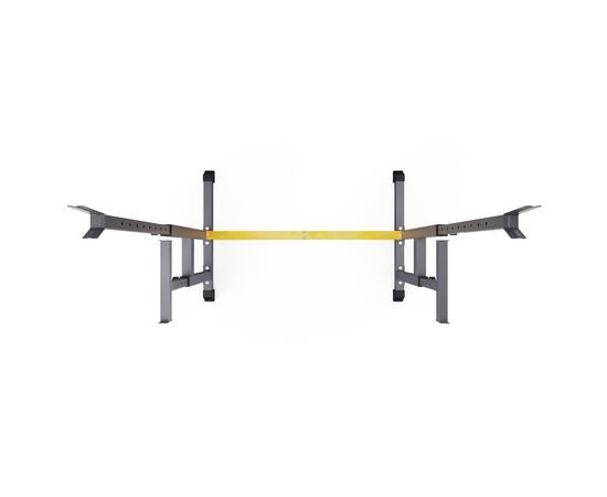 Ширину стойки для жима можно индивидуально настроить на 67 см или 122 см. Нескользящие ножки надежно устанавливаются на полу и не царапают поверхность.