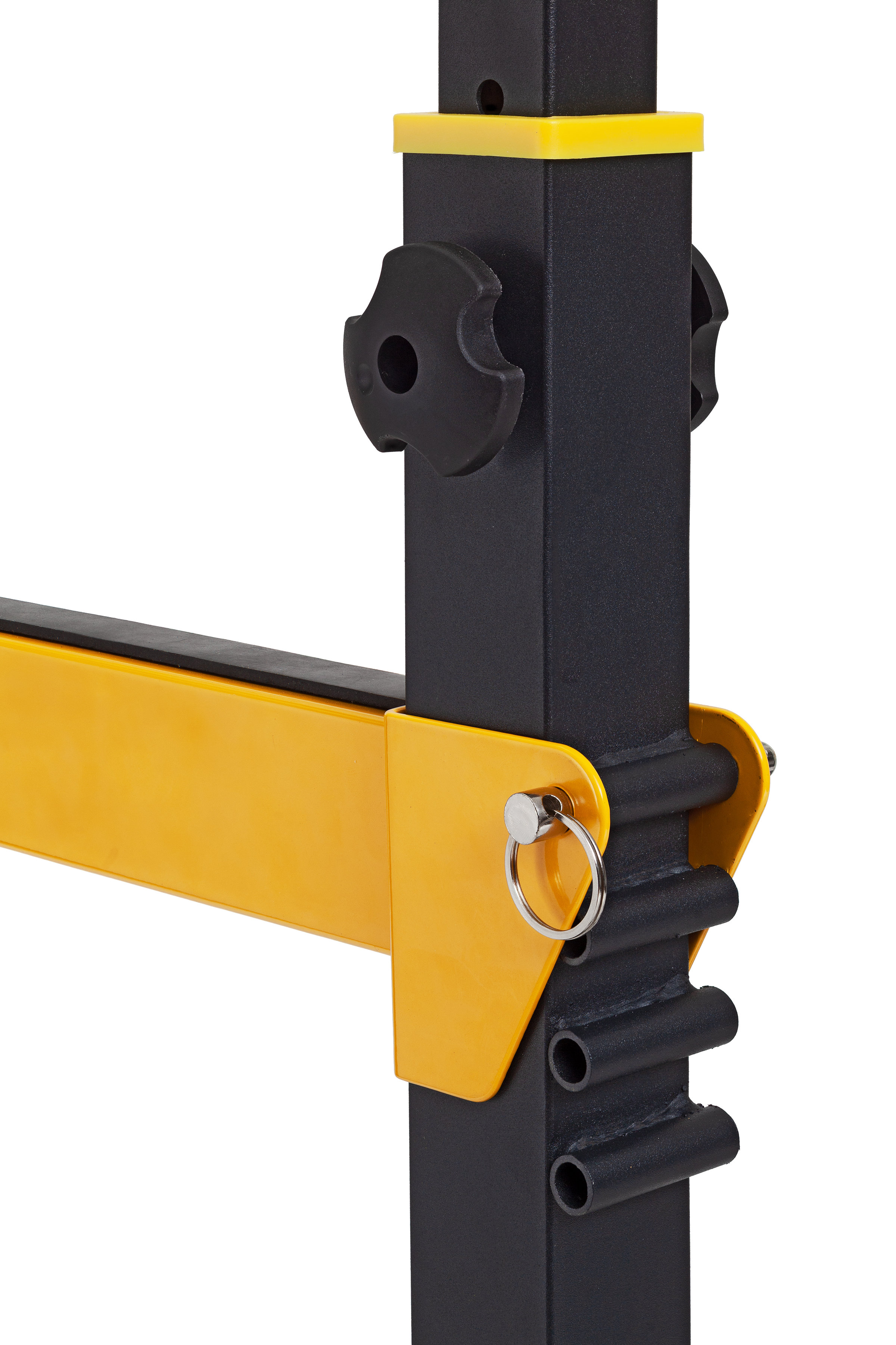 ОписаниеСтойка для штанги VictoryFit VF-T15 выполнена из стального профиля 50×50 мм, толщиной 1.5 мм, покрытого порошковой краской. Оснащена съемными регулируемыми страховочными платформами, длиной 28 см. Стойка регулируется по ширине в диапазоне от 71 до 120 см, подойдет под любой размер грифа, а также по высоте от 86 до 156 см. Стойку можно использовать как для жима лежа, так и для приседаний со штангой. Резиновые ножки не позволят стойке скользить по полу и портить его поверхность.