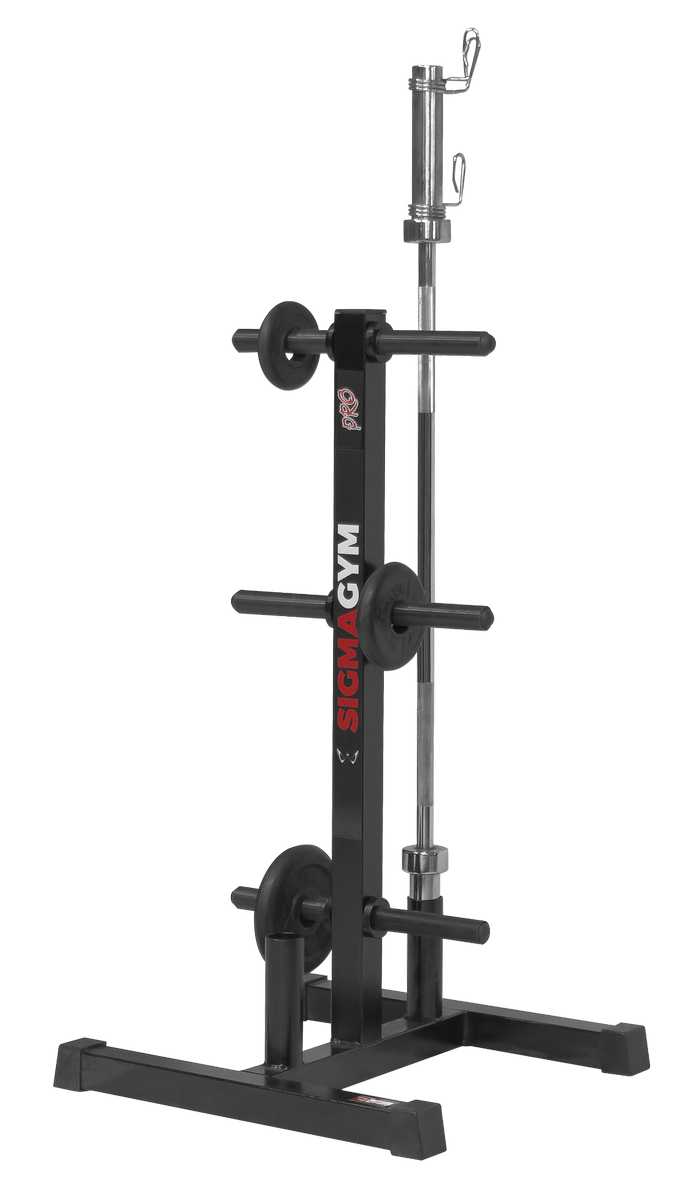 Тренажер предназначен для хранения дисков и грифов. Имеет 6 накопителей для дисков и две посадочных втулки для грифов диаметров 25/50 мм (на выбор).