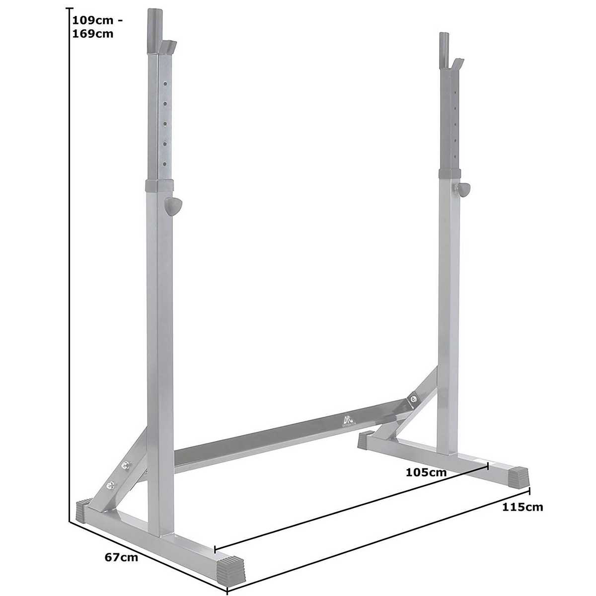 Держатели под штангу регулируются по высоте в диапазоне от 109 до 169 см. 15 уровней с шагом 5 см.