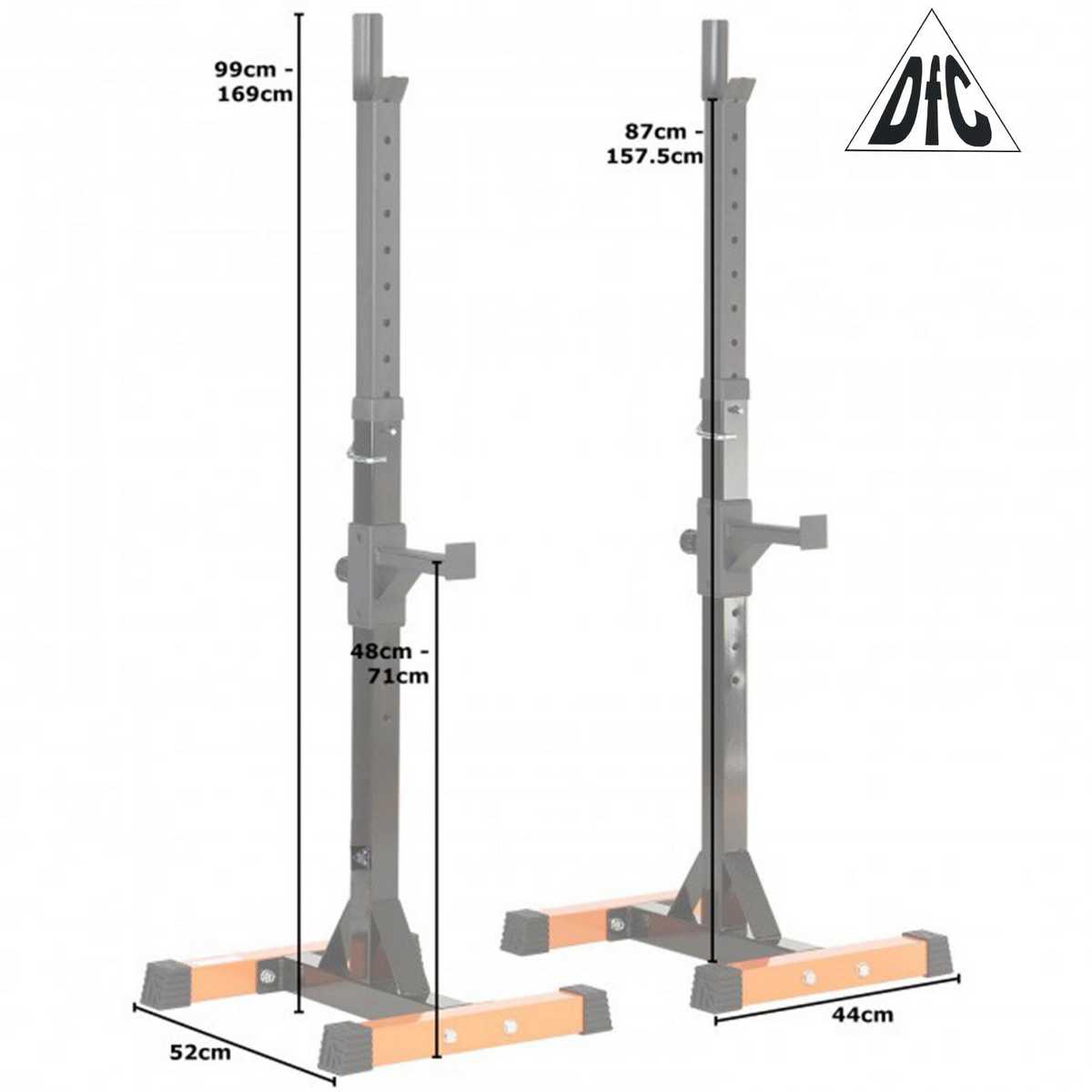 - штангу с дисками или гантели на выборНагрузка на стойки (общая) до 200 кг Размер каждой стойки 44 х 52 х 99 - 169 см Высота держателей под штангу 87 - 157,5 см Высота страховочных держателей 49 - 71 см Ширина страховочных держателей см Размер упаковки 95,5 х 43 х 16,5 см Объем упаковки 0,068 м³ Вес нетто 17 кг Вес упаковки 19 кг Бренд DFC Страна производтва Китай Гарантия 12 месяцев