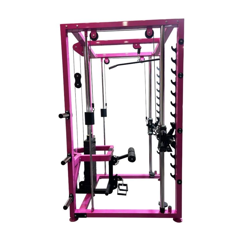 ОписаниеЭтот многофункциональный тренажер, сочетающий в себе Машину Смита с противовесом и универсальную тягу. Противовес уравновешивает вес грифа, позволяя начинать тренировку с минимальной нагрузки. Универсальная тяга включает вертикальную и горизонтальную тягу с весовым стеком 110 кг. Для выполнения тяг рекомендуется использовать скамью. Многофункциональная конструкция и продуманная эргономика делают данный тренажер отличным выбором для небольших и домашних тренажерных залов.
