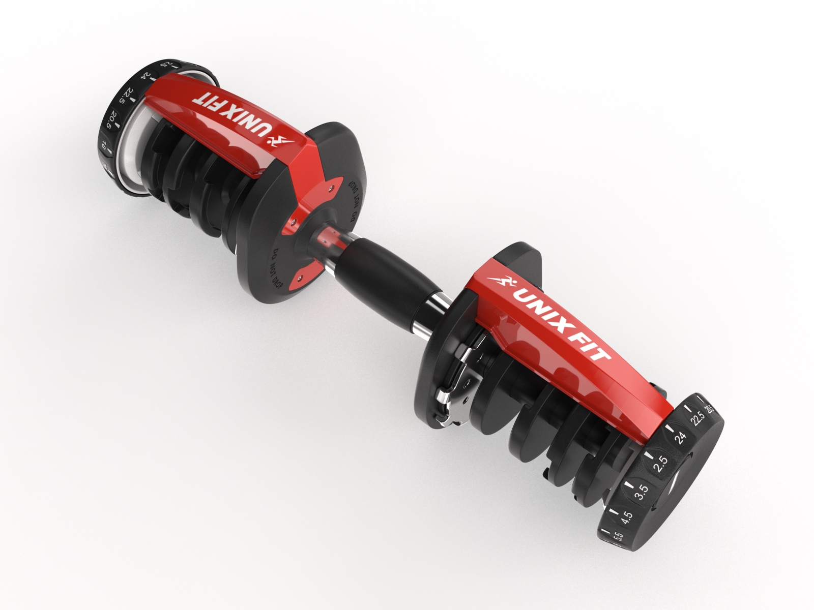 Гантель со ступенчатой регулировкой UNIX Fit весом 24 килограмма имеет 15 уровней нагрузки (от 2,5 до 24 кг). Современная конструкция позволяет изменять вес гантели за считанные секунды. Благодаря специальной системе замков при повороте индикатора веса фрагменты гантели, соответствующие выбранному весу, надежно крепятся на грифе. Использование данной системы позволит существенно сократить время, затрачиваемое на изменение веса снаряда во время тренировки.