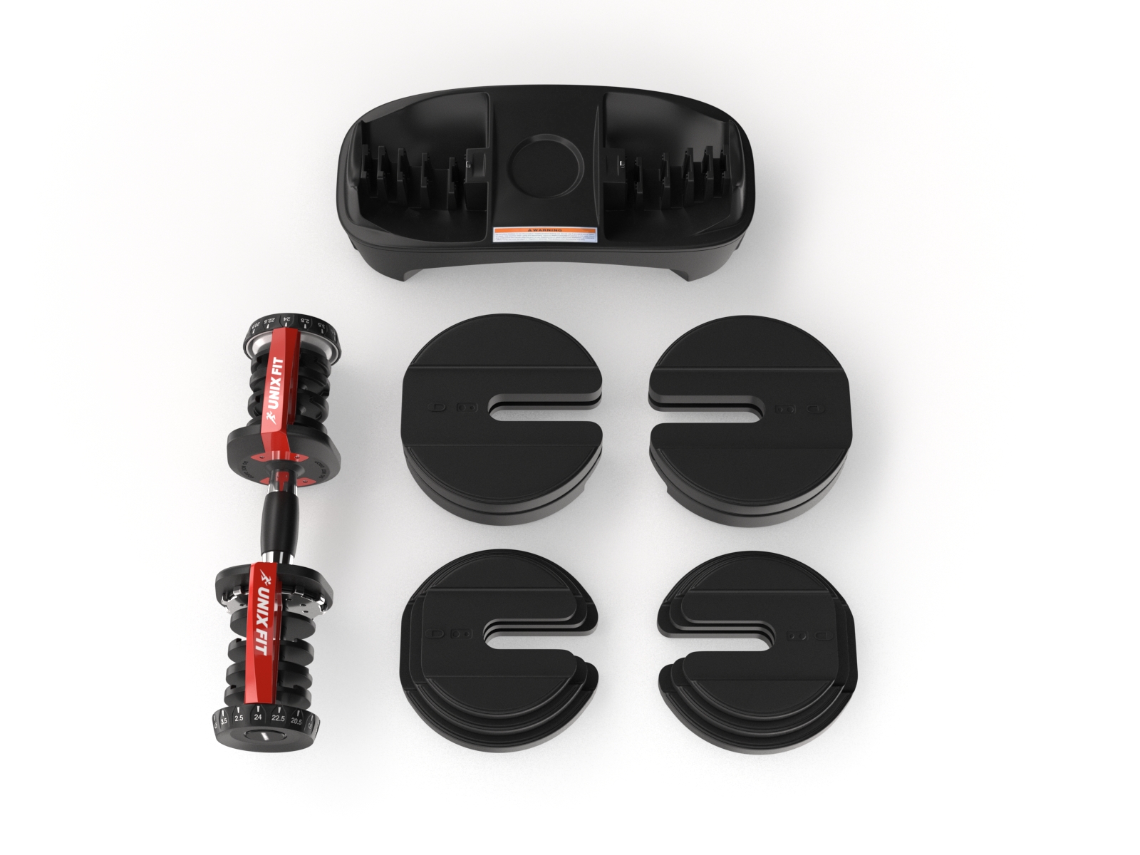 В комплект входит подставка для хранения и регулировки веса гантели.