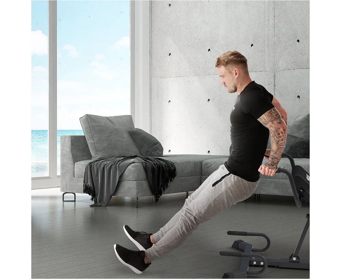 Тренажер поддерживает широкий спектр упражнений: гиперэкстензии, скручивания, боковые наклоны, отжимания, сгибания рук, приседания и многое другое. Это делает его идеальным выбором для домашних условий, позволяя заменять сразу несколько спортивных снарядов одним устройством.