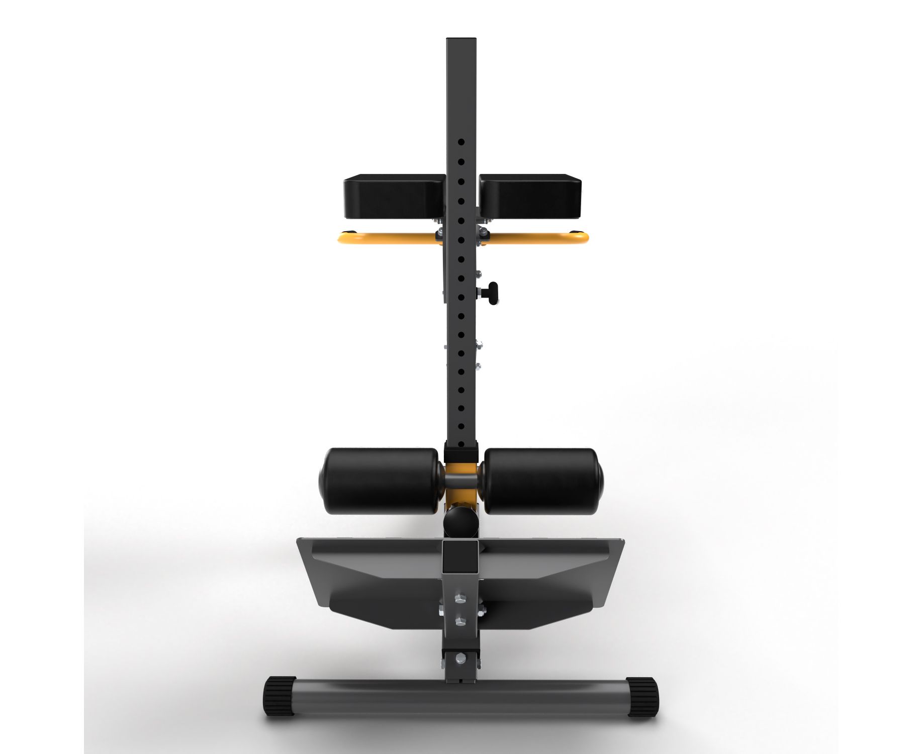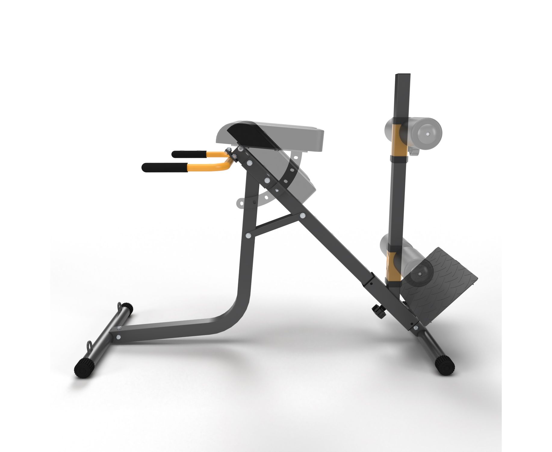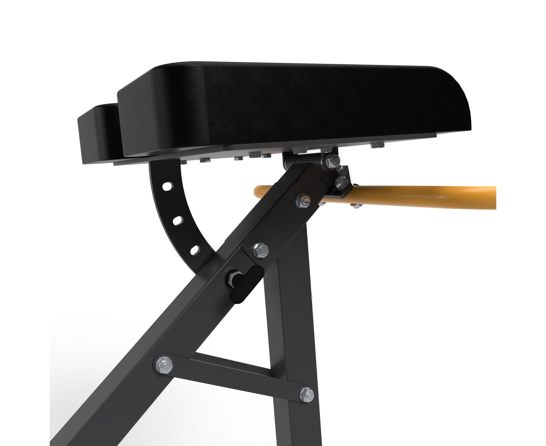 Угол наклона подушек регулируется в 4-х положениях: 4,5°, 18°, 31,5° и 45°. Данное свойство позволяет выполнять несколько техник гиперэкстензий, в том числе обратную и с наклоном. Подушки для упора, размерами 35 х 19 х 7 см выдерживают динамическую нагрузку до 150 кг.