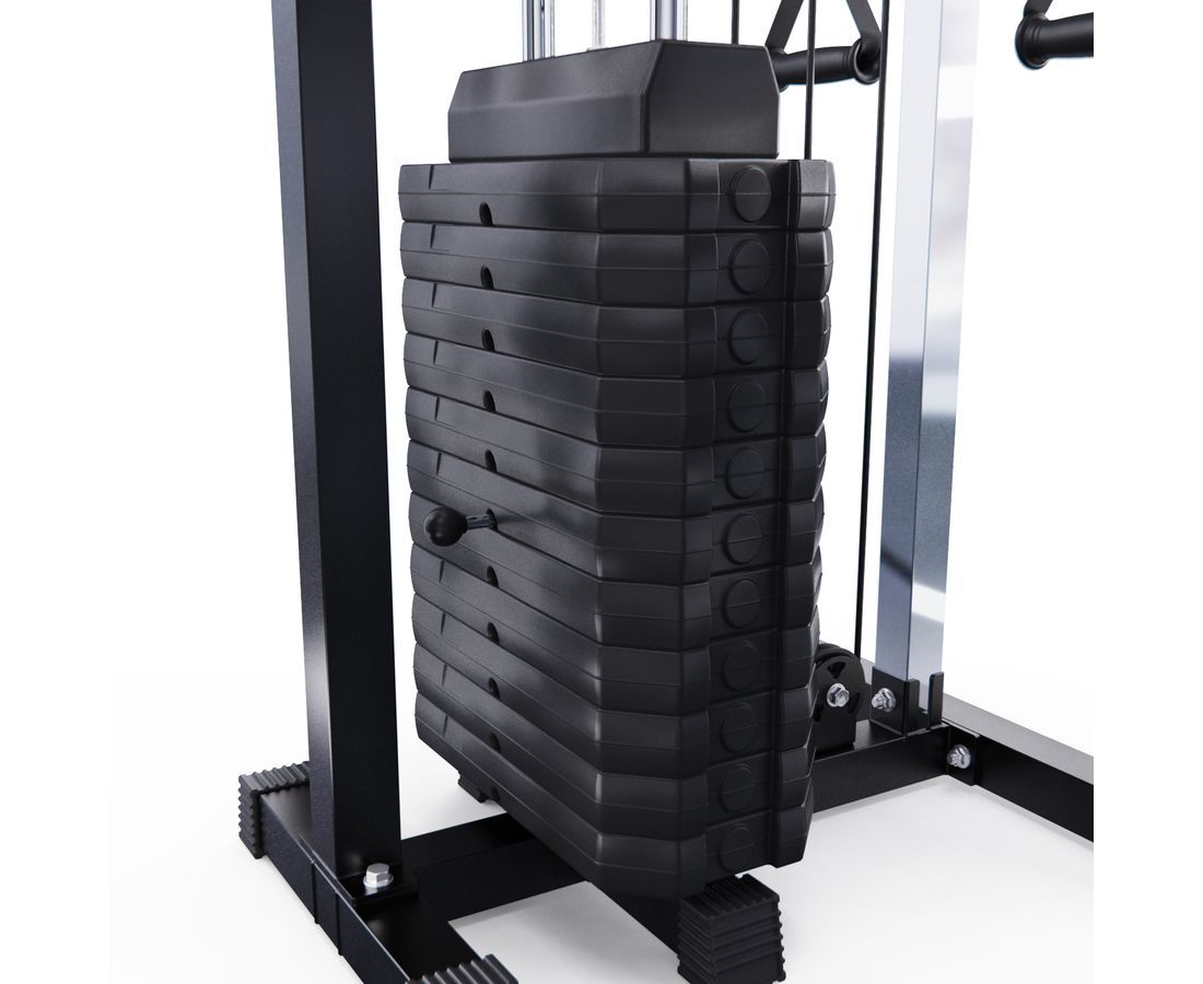 ОписаниеМногофункциональный силовой тренажер (кроссовер) со встроенным весовым стеком общей массой 66 кг.